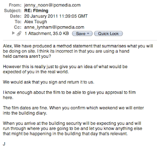 To film at the Blue Fin Building we had to create a method statement to give to the Facilities Director Jenny. This basically just tells her how we plan to go about our filming, because there are no real risks to be taken, a risk assessment is not needed